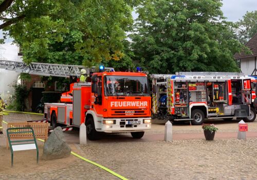Großalarm an der Pinnau – eine verletzte Person, Feuer im Dachstuhl des Mittelhauses und ein explodierter Gasgrill wurde am 28.6.2023 der Einsatzleitung gemeldet – zum Glück war es nur eine Übung.