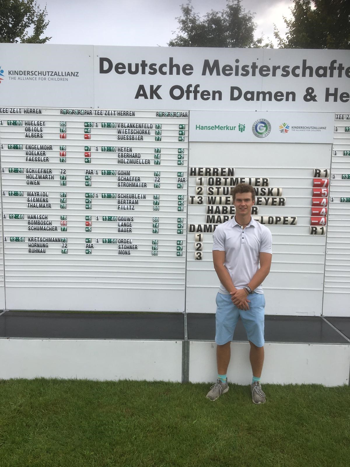 der AK Offen (also die Creme de la Creme der deutschen Amateur Spieler) qualifiziert. Als wäre das nicht schon genug, hat er am heutigen ersten Wettkampftag auf dem längsten Kurs Deutschlands des GC München Valley (6700 m) trotz Dauerregens eine 73 auf den Rasen gezaubert und sich bei 72 Spielern auf den geteilten 21. Platz vorgespielt. In dem hochkarätig besetzten Feld hat Simon das viertniedrigste Handicap (+2,0) und musste sich gegen zahlreiche Spieler mit Handicaps von bis zu +7 durchsetzen. Herzlichen Glückwunsch und wir drücken für morgen die Daumen! Du holst dir den Cut!