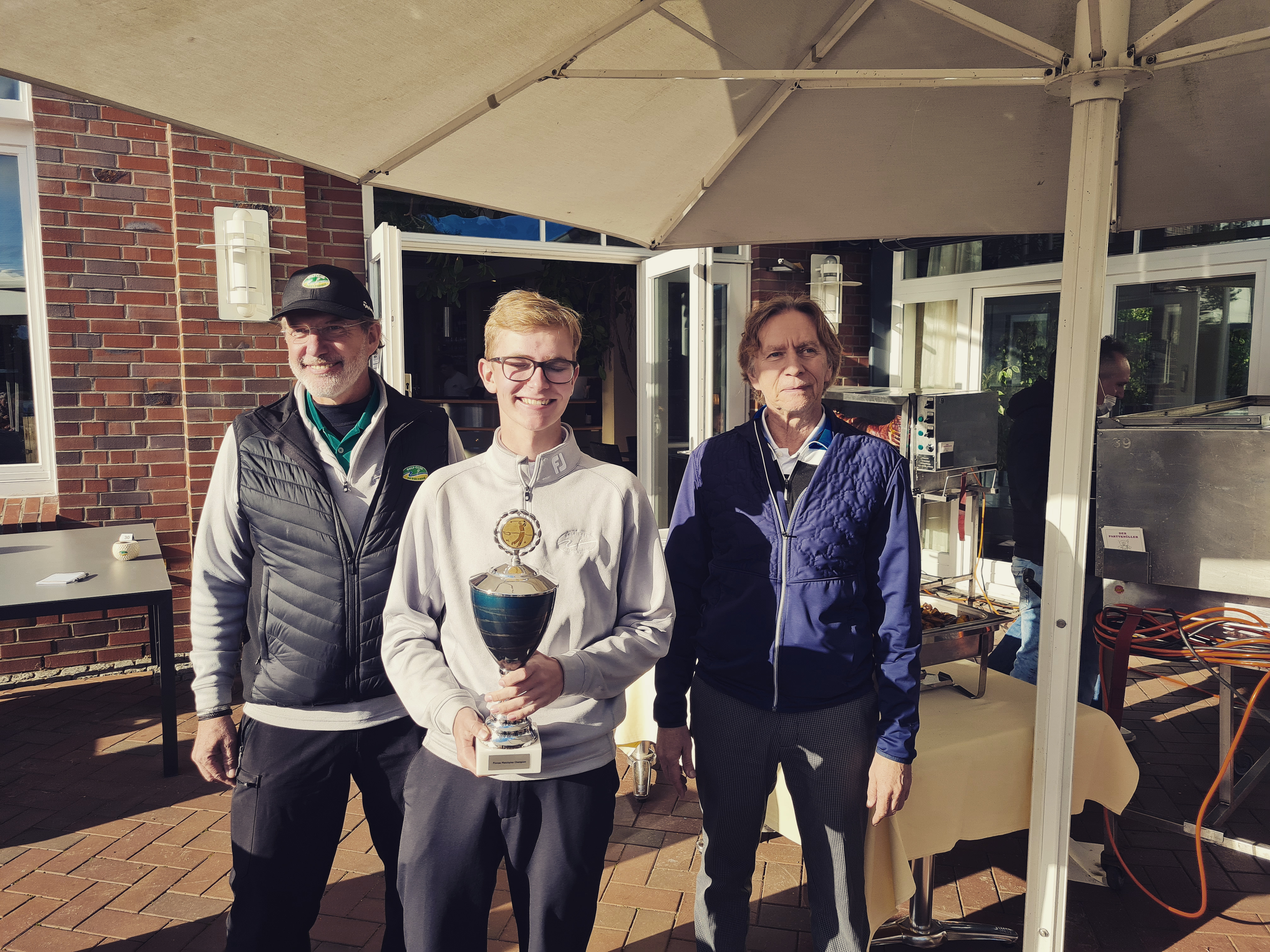 Spannend war es vor allem im finalen Spiel um den Gesamtsieg zwischen Jonathan Duvigneau und Gerd Reimers. Die Führung wechselte ständig, nur wenige Löcher wurden geteilt. Am 17. Loch auf dem C Kurs führte Jonathan mit 2 auf. Durch einen präzisen Schlag aufs Grün konnte Gerd den Abstand auf 1 auf verkürzen. So wurde es am 18. Loch noch einmal spannend. Jonathan platzierte seinen Abschlag in den Fairwaybunker, man diskutierte schon über die Auswahl für das 19. Loch. Den Schlag danach setzte er jedoch kurz vor das Grün. Mit dem geteilten 18. Loch konnte Jonathan den Sieg für sich verbuchen und das bei seiner 1. Matchplay Teilnahme. Glückwunsch!