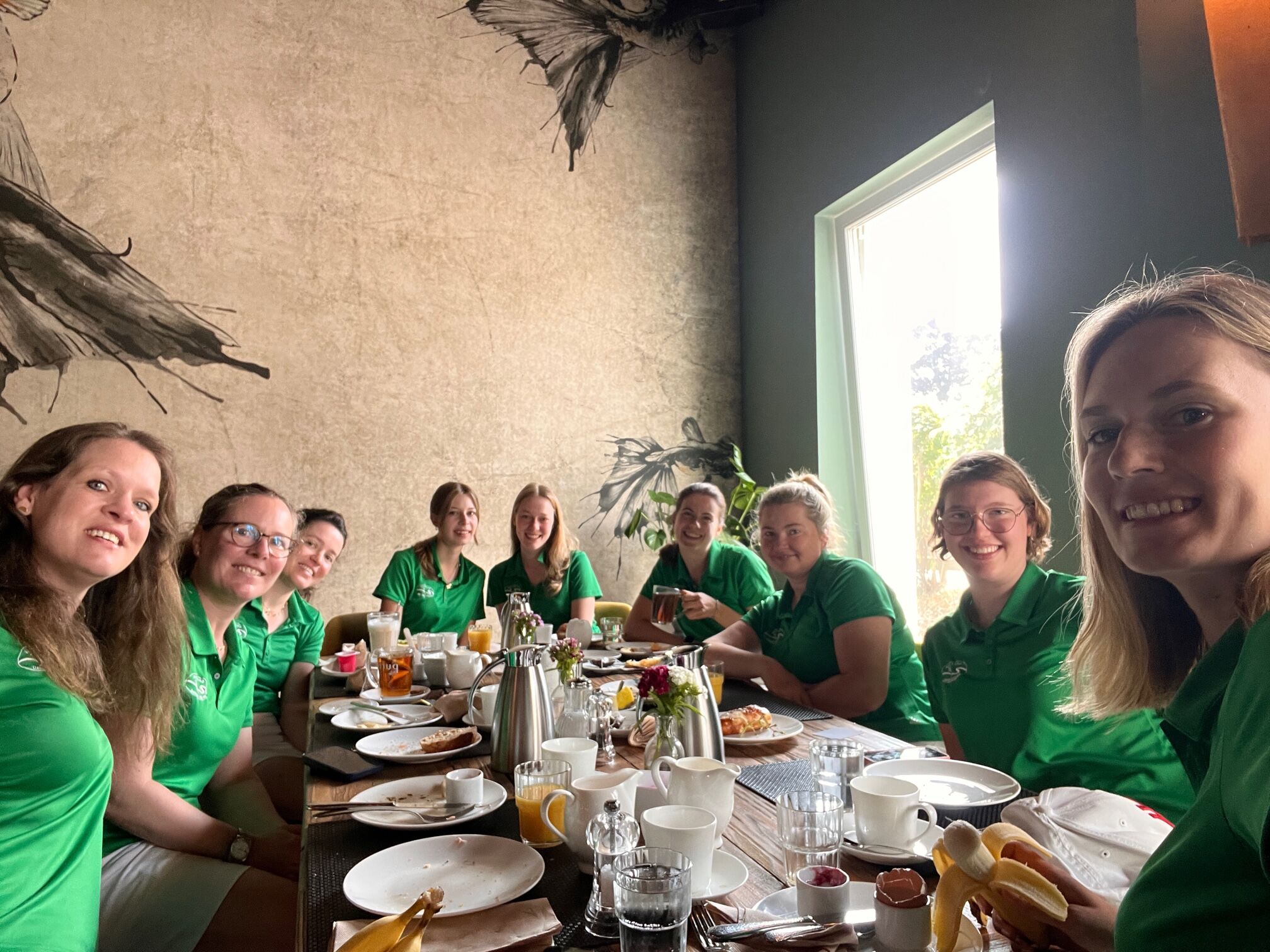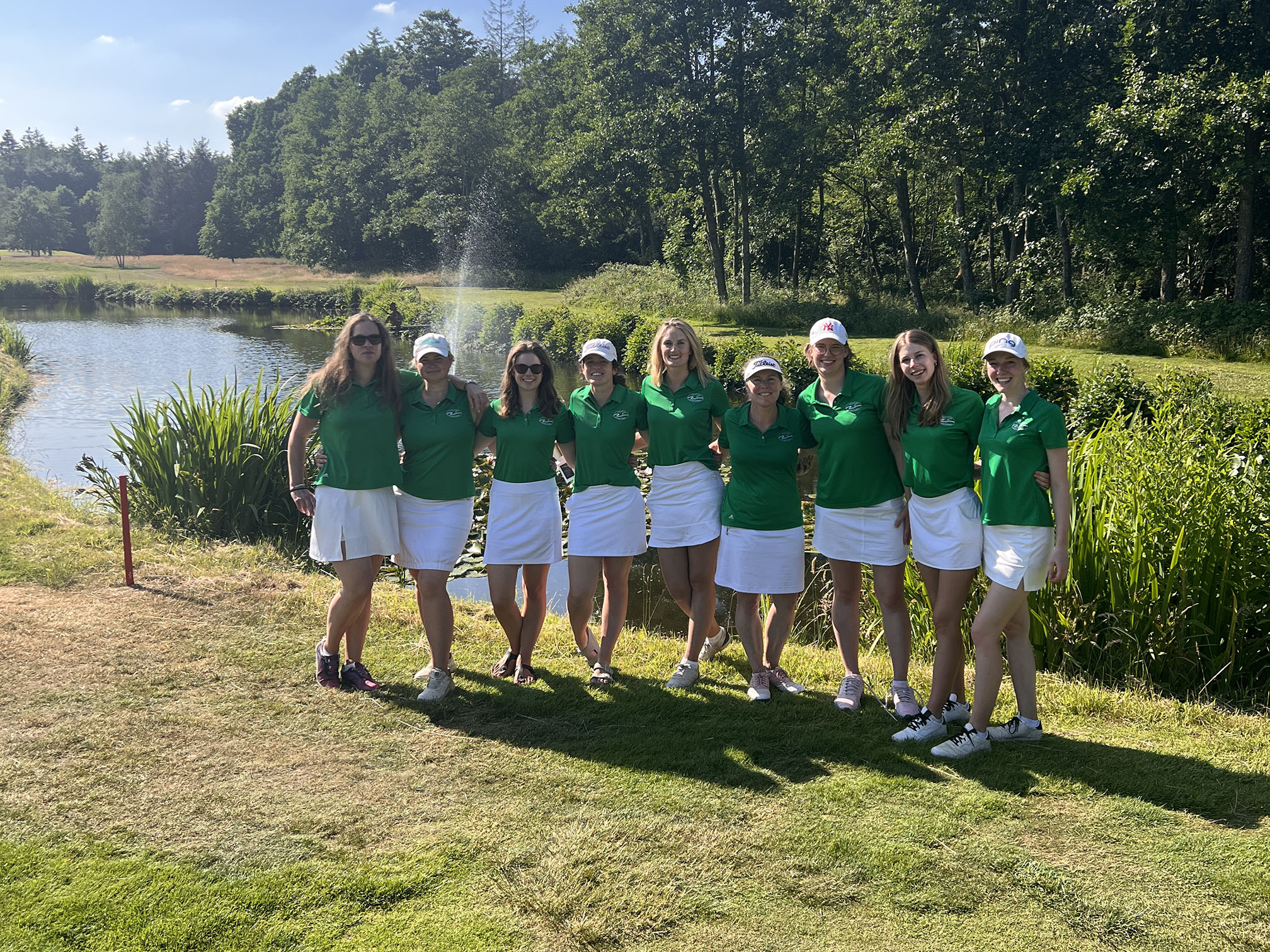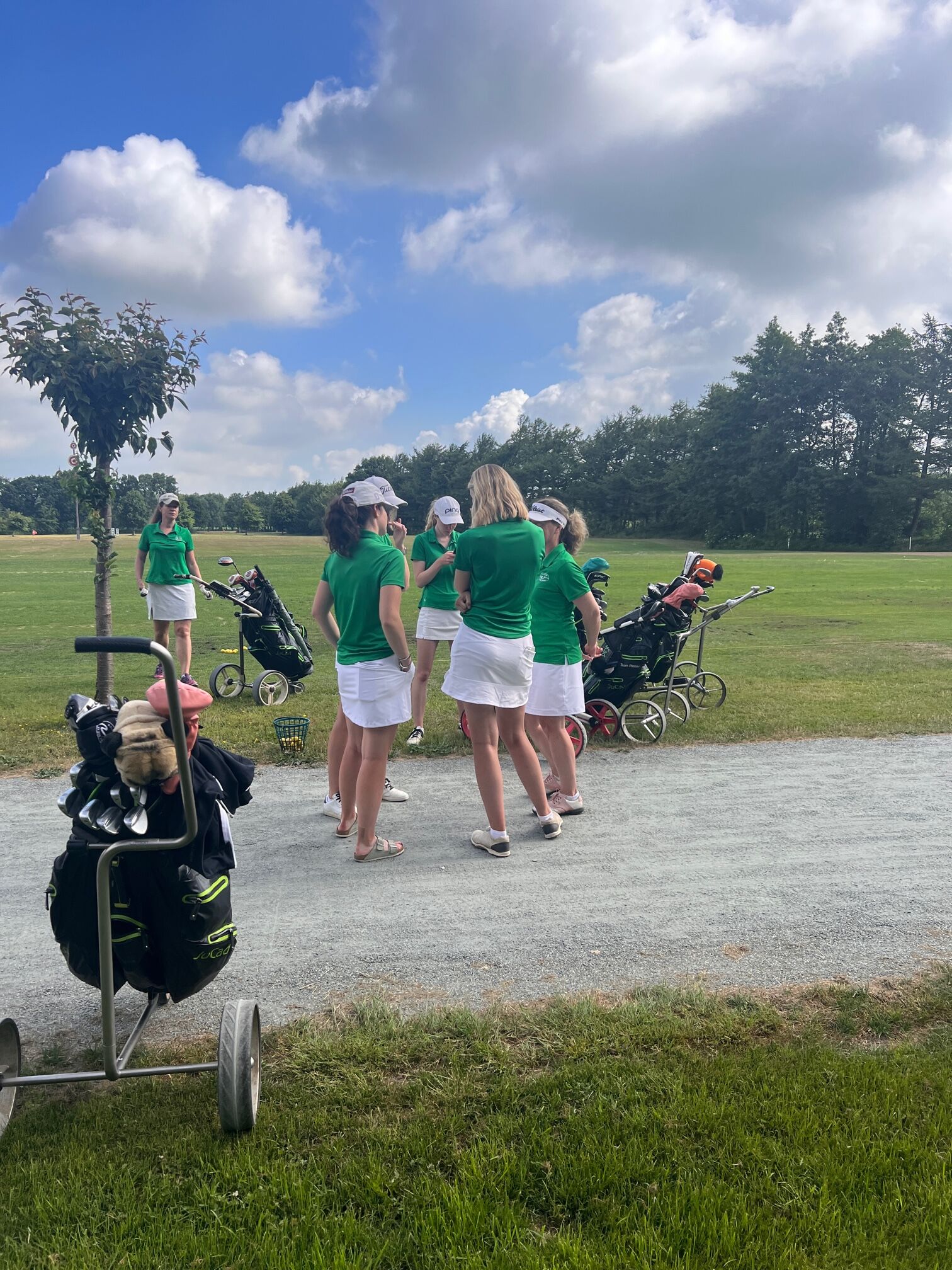 Ganz besonders freuen wir uns über das Ergebnis von Maggie Overmann, die uns eine 79 reinbrachte. Eine wirklich großartige Runde, die in der zweiten Hälfte von Nele Domres als Caddie begleitet wurde. Mega Ladies! Der Rest des Teams brachte mit etwas Schwitzen, aber Kampfgeist eine 85 (Anja Widderich), 87 (Nelly Neukirchner), 88 (Jenny Barclhan), 89 (Katharina Garbs + Caddie Melanie Neumann) und 90 (Elaine Peters + Caddie Jette Wiese) ins Ziel. Gemeinsam erzielten wir somit als Team eine schöne Leistung von 68,5 Schlägen über CR bei viel Sonne und guter Laune.