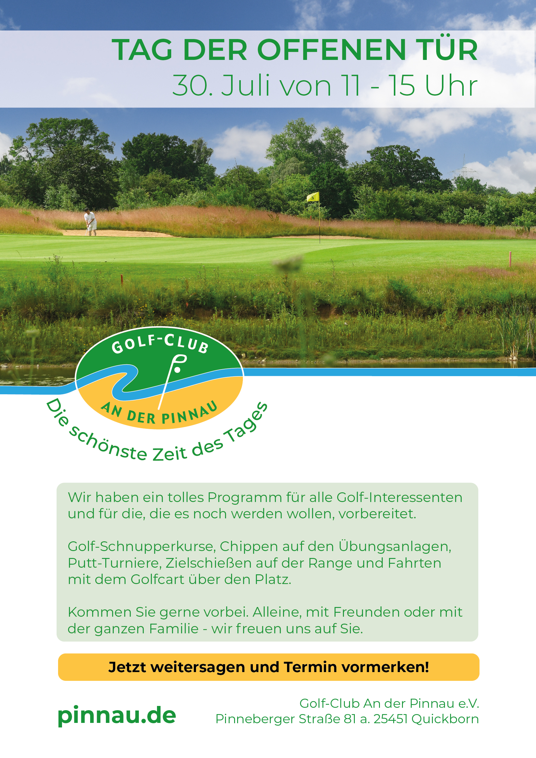 Wir haben ein tolles Programm für alle Golf-Interessenten und für die, die es noch werden wollen, vorbereitet.